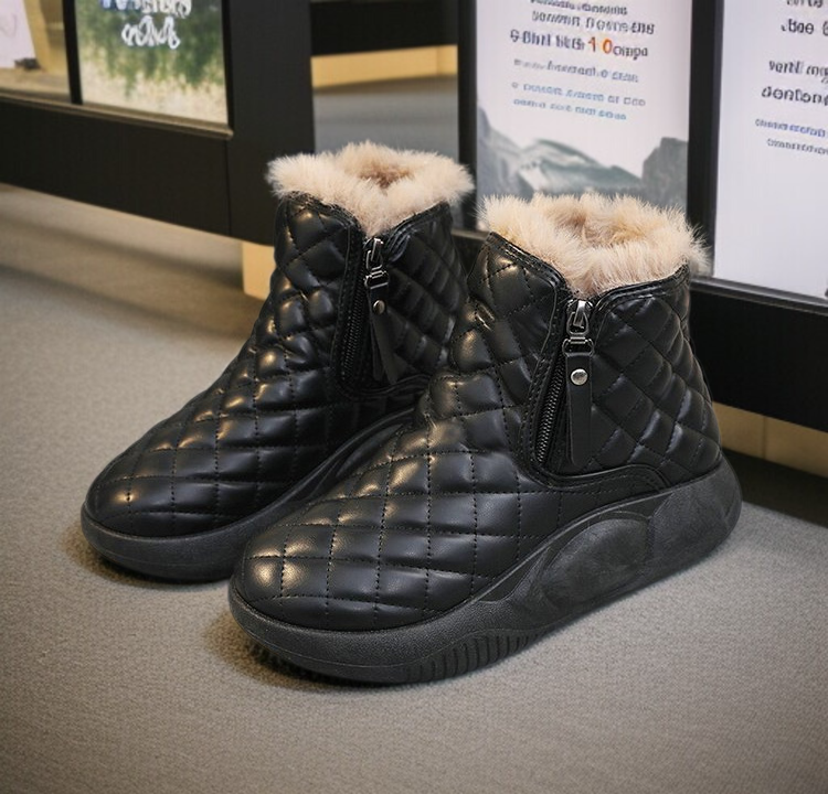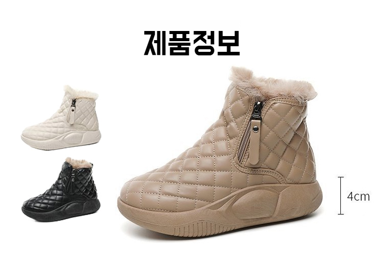 ● 겨울철에도 따뜻하게! 고급 융털 안감으로 발 전체를 포근하게 감싸주어 한파에도 걱정 없이 착용할 수 있습니다. ● 통굽 디자인으로 키높이 효과와 안정적인 착화감을 동시에 제공하며, 장시간 착용에도 편안함을 느낄 수 있습니다. ● 미끄럼 방지 아웃솔로 눈길이나 빙판길에서도 안전하게 활동할 수 있어 겨울철 야외 활동에 최적화된 부츠입니다. ● 캐주얼한 디자인으로 다양한 겨울 코디에 쉽게 매치되며, 데일리룩부터 외출복까지 활용도가 높은 아이템입니다. ● 내구성 좋은 소재와 꼼꼼한 마감처리로 오랜 기간 변형 없이 사용할 수 있어 경제적인 겨울 신발 선택입니다.